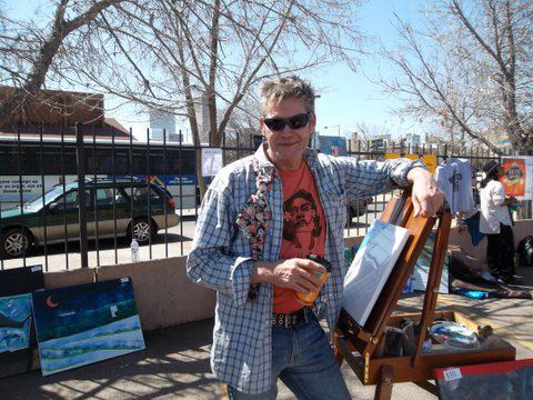 Painter Michael Purcell at the Upper Colfax Root 40 MusicFest. (photo by Orville Springs)Local artist/painter Michael Purcell will be exhibiting at Odin’s 4th annual Winter Solstice – this may be his last engagement in Colorado before he moves east, so please come on out and show him some love. He paints with an array of styles including surrealism, abstract, expressionist landscapes and cubism. His collection includes paintings large and small.