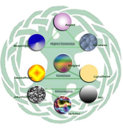 In Norse mythos, there were nine worlds and these were connected to nine levels of consciousness from sub to supra: