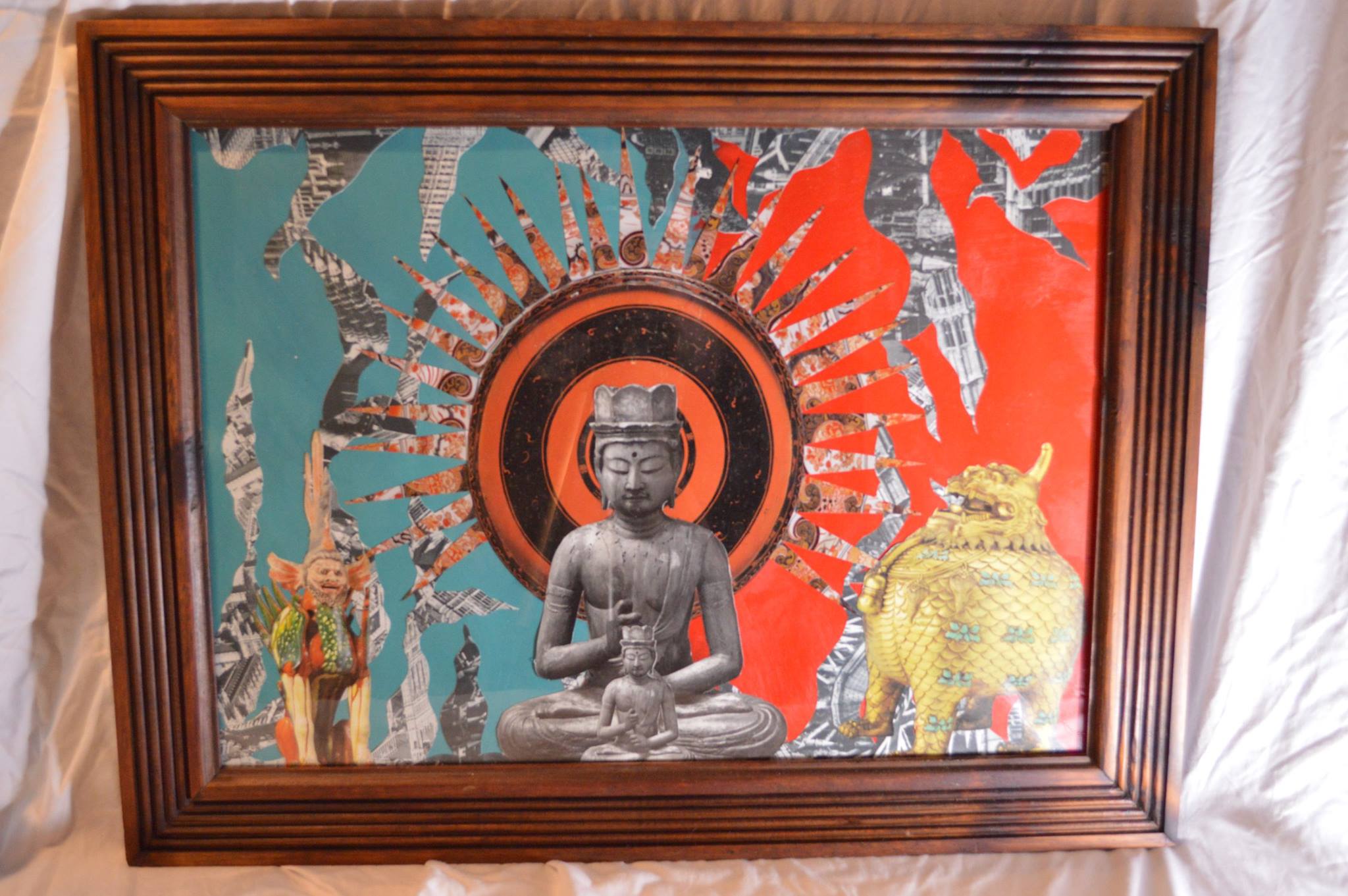 Andrew Gelwick is an emerging Denver artist who uses vintage materials (mostly from garage sales and thrift stores) in his mixed media pieces. This is Andrew’s first time attending an event for Odin’s Other Eye. His art covers the spectrum from Asian philosophical influences to the beauty of a summer evening. You can also find Andrew’s “reject” artwork on Instagram.