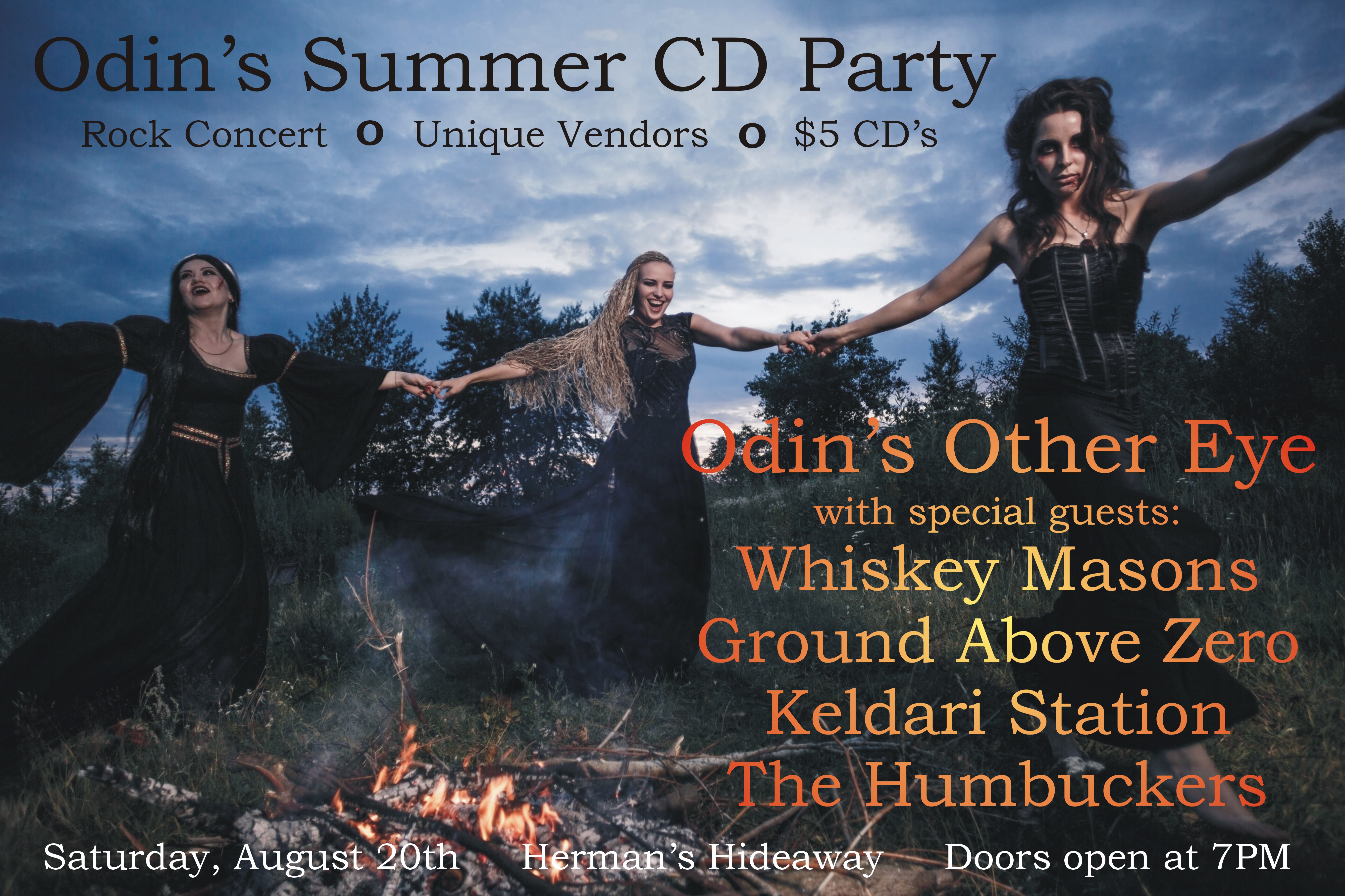 Dare we invoke tornadoes, dust devils, forest fires, or acid rain? Odin’s Summer CD Party is scheduled for Saturday, August 20th at ye olde Herman’s Hideaway.